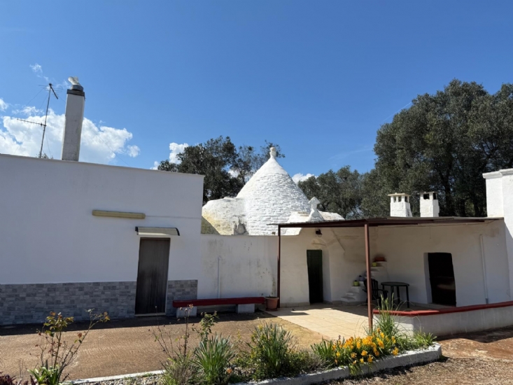 Tra le campagne di Ceglie Messapica, proponiamo in vendita trulli e lamie con terreno, composti da 4 coni, 2 lamie, camino, servizi, forno a legna, veranda, cisterna, terreno piantumato con ulivi ed alberi da frutto.