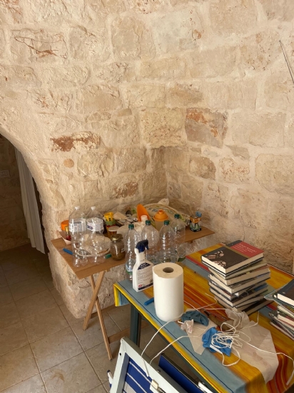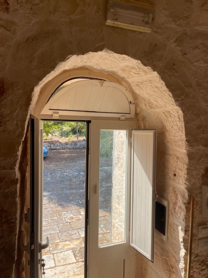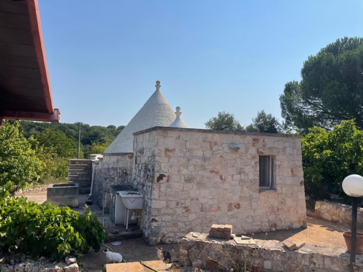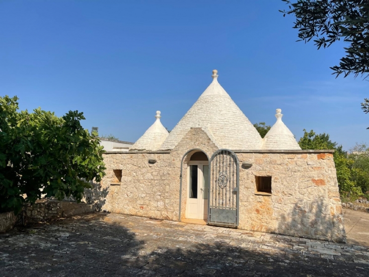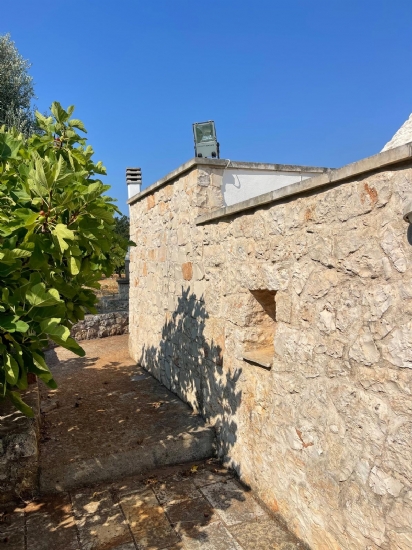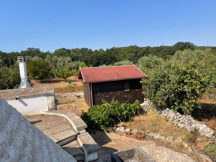 In Puglia, Alto Salento, agro di Ostuni, famosa cittadina arroccata tra il mare e l'entroterra, proponiamo in vendita complesso di trulli e lamie ristrutturato con terreno, composto da soggiorno-cucina openspace, 1 camera da letto, servizi, aia, forno a legna, cisterna, fossa imhoff, casetta in legno ricovero attrezzi, terreno piantumato con ulivi ed alberi da frutta.