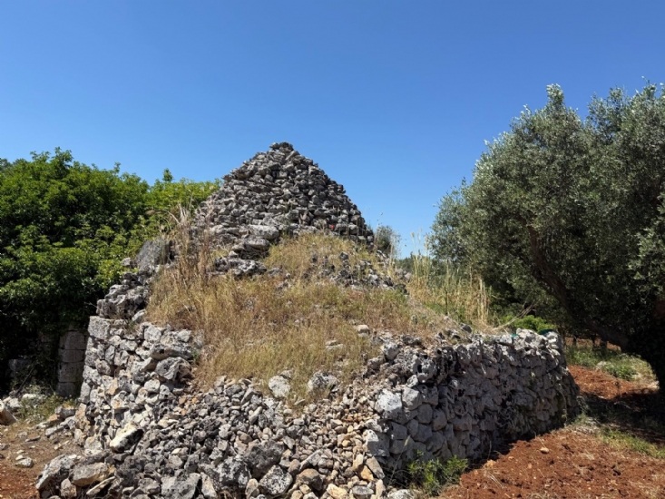 In Puglia, tra il Salento e la Valle D'Itria, agro di Ceglie Messapica, proponiamo in vendita trulli con terreno da ristrutturare (sistemazione delle pietre esterne), composto da 3 coni con camino, cisterna, terreno piantumato con ulivi ed alberi da frutta.