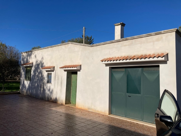 In Puglia, Alto Salento, agro di Ceglie Messapica, proponiamo in vendita villetta parzialmente ristrutturata con terreno, composta da soggiorno con angolo cottura, 2 camere da letto, servizi, ampio garage, dependance composta da soggiorno, cucina 2 camere da letto, servizi, ampio piazzale, pergolato, 2 cisterne, terreno piantumato con ulivi ed alberi da frutta.