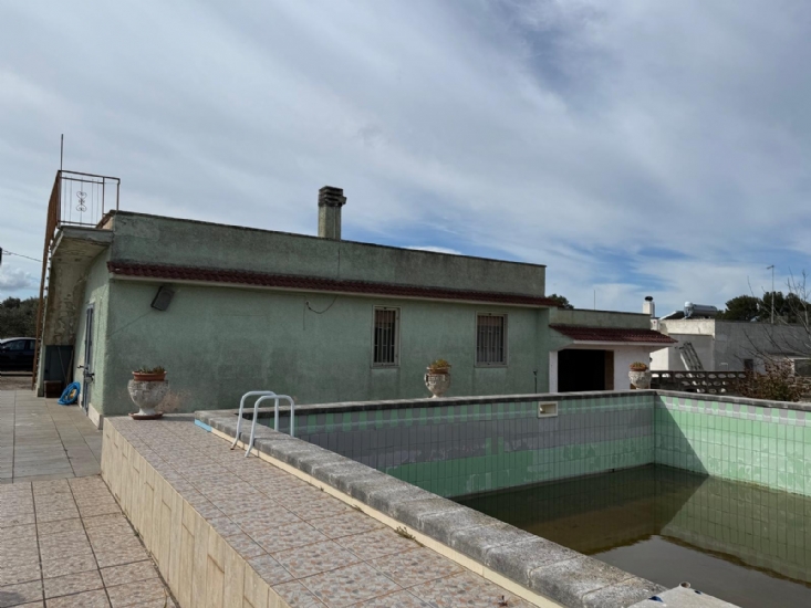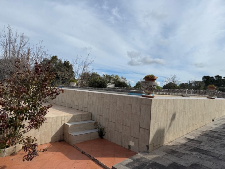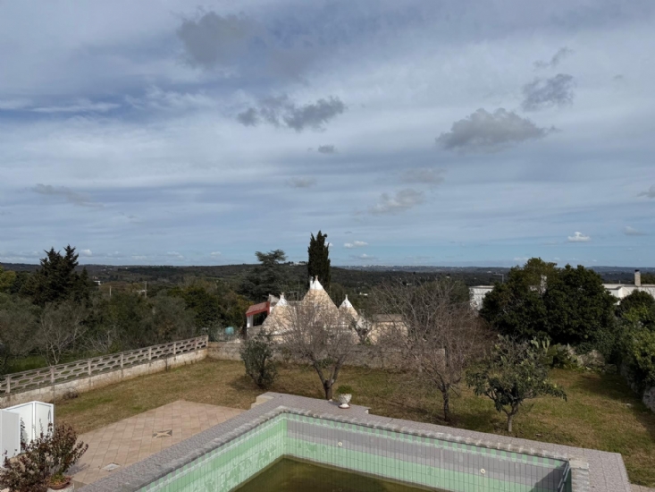 In Puglia, tra il Salento e la Valle D'Itria, agro di Ceglie Messapica, proponiamo in vendita, in zona abitata con posizione collinare, villa con piscina composta da soggiorno, cucina abitabile con camino, 3 camere da letto, servizi, altra cucina esterna con forno a legna, veranda, piscina, piazzale e terreno.