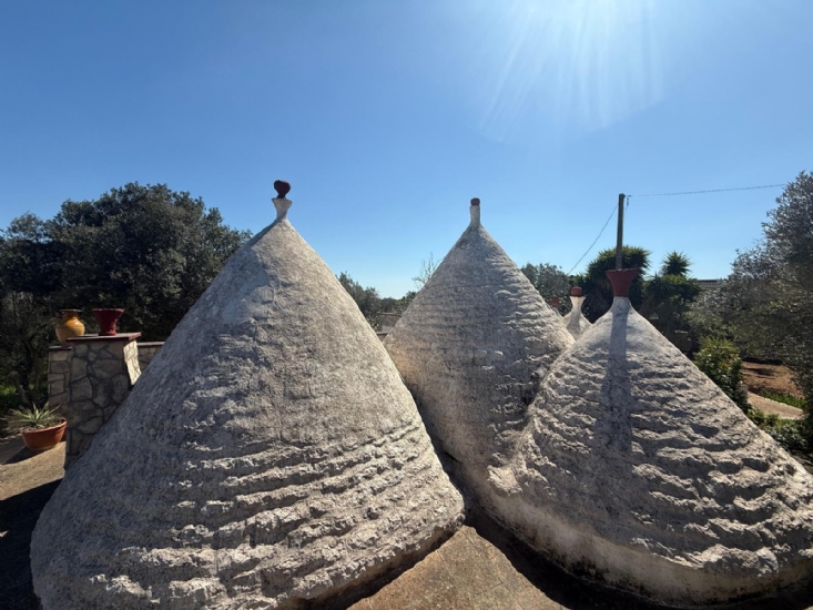 In agro di Ceglie Messapica, proponiamo in vendita complesso di trulli e lamie con terreno composto da gruppo di 5 coni abitabili e comunicanti tra di loro;